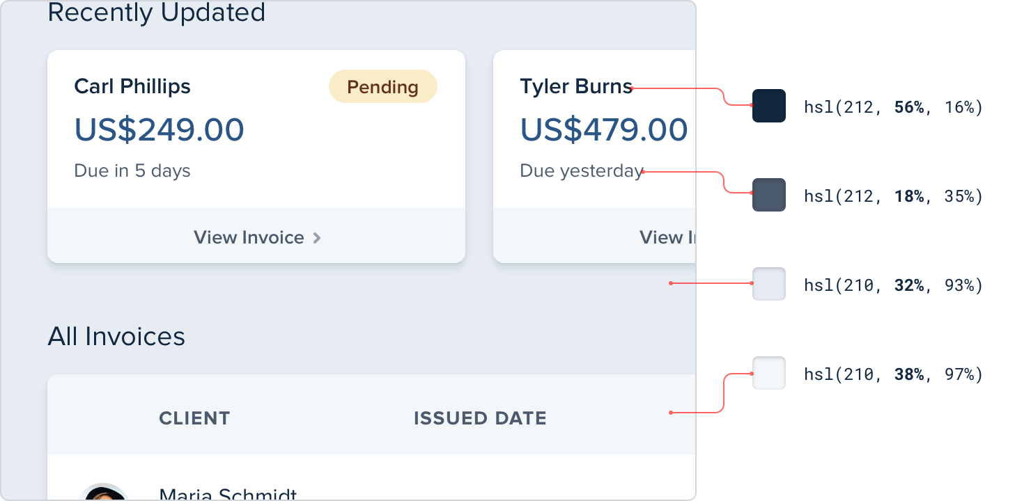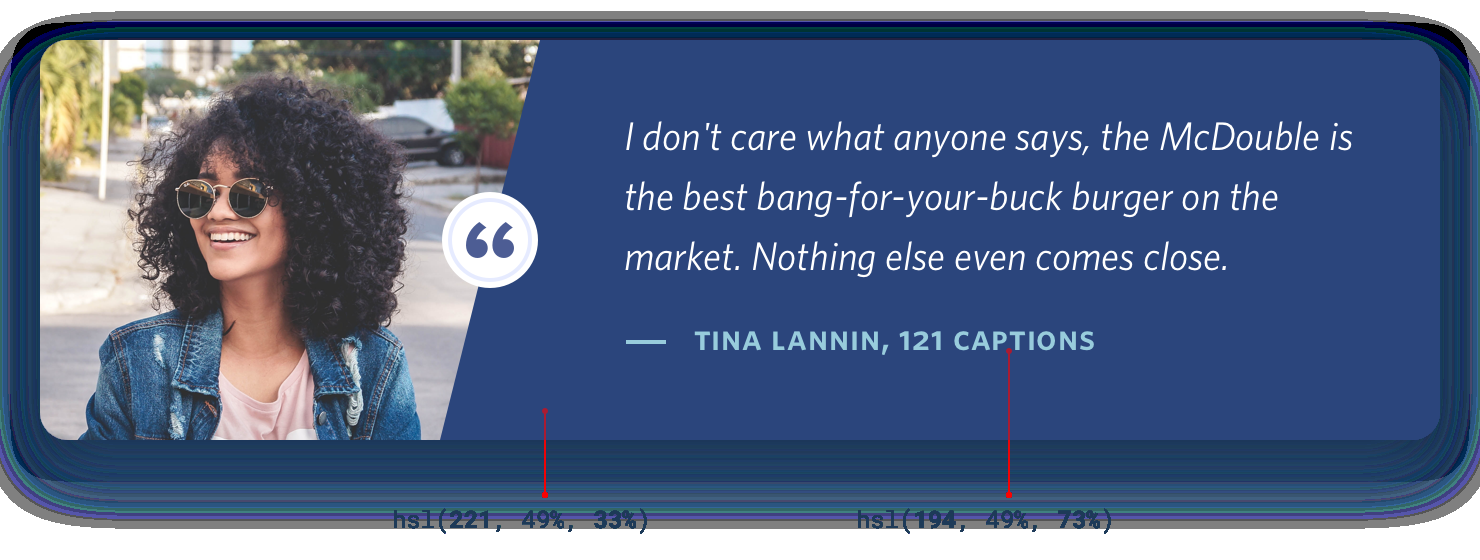 For a more energetic look, you could even use a slight gradient: For best results, use two hues that are no more than about 30° apart.