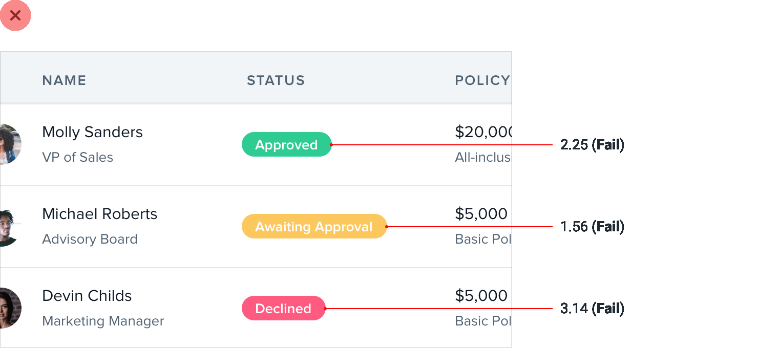 Table content doesn’t have to be plain text, either. Add images if it makes sense, or introduce some color to enrich the existing data: How about radio buttons? There’s nothing more boring than a stack of labels with little circles next to them.