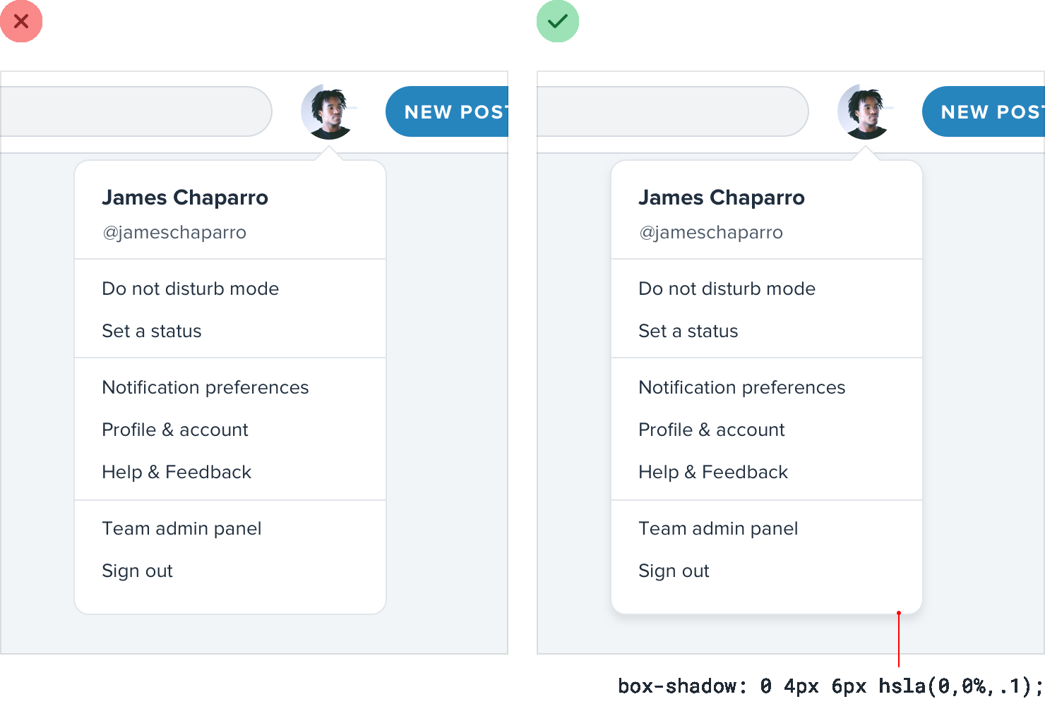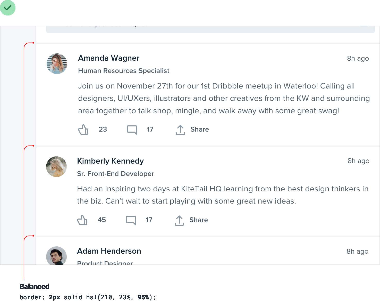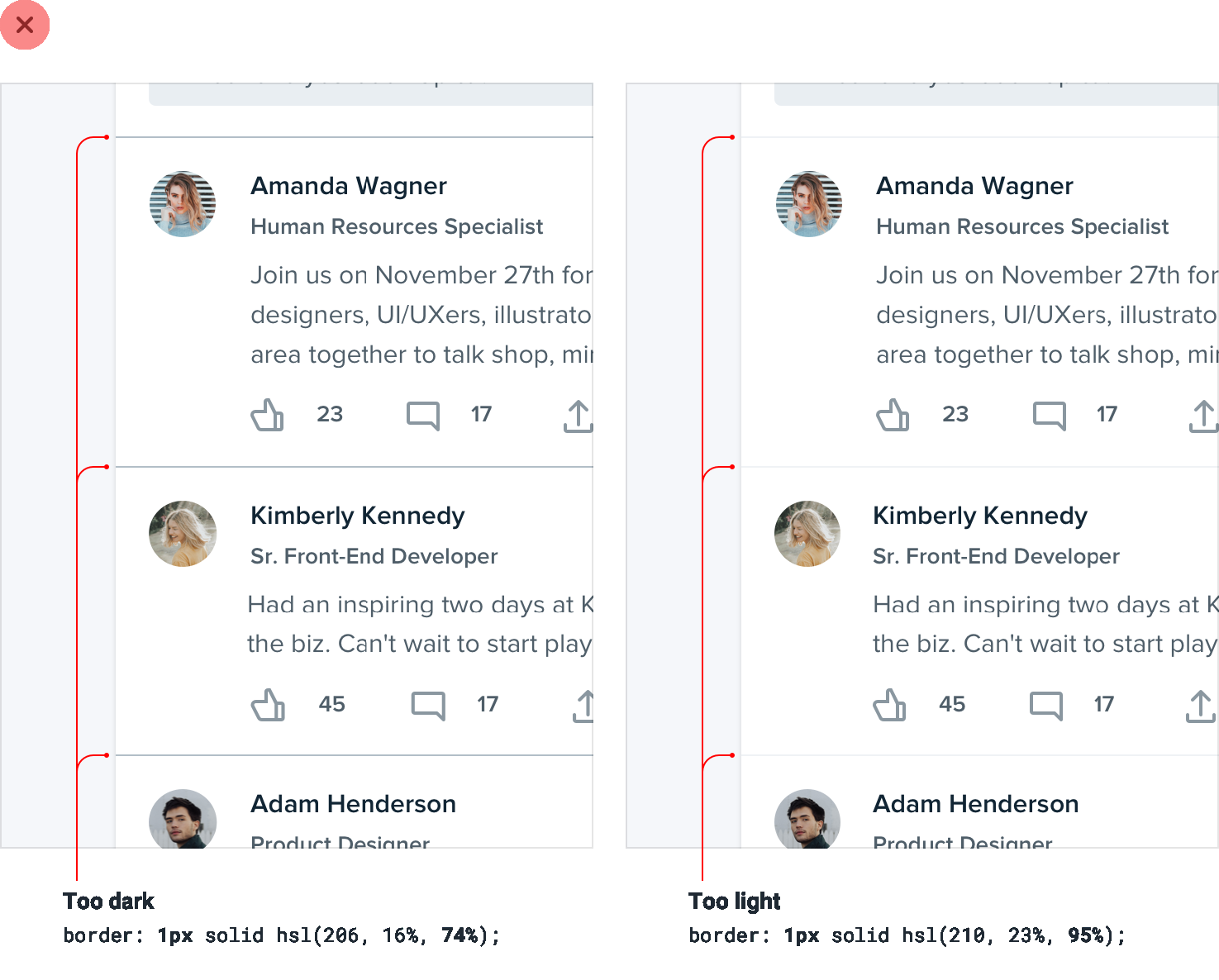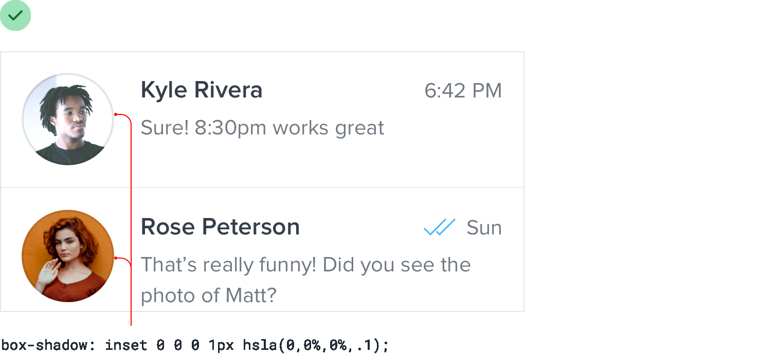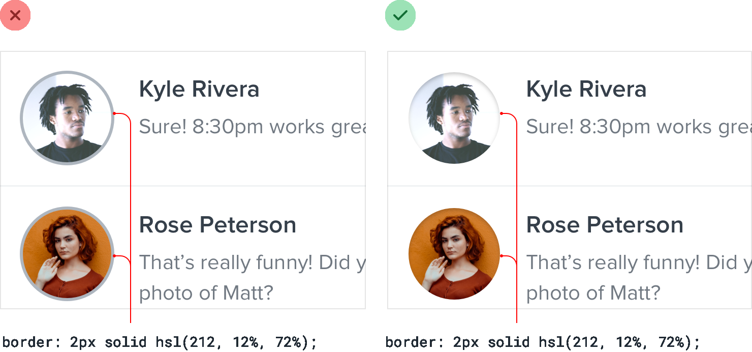 When you need to create separation between two elements, try to resist immediately reaching for a border.