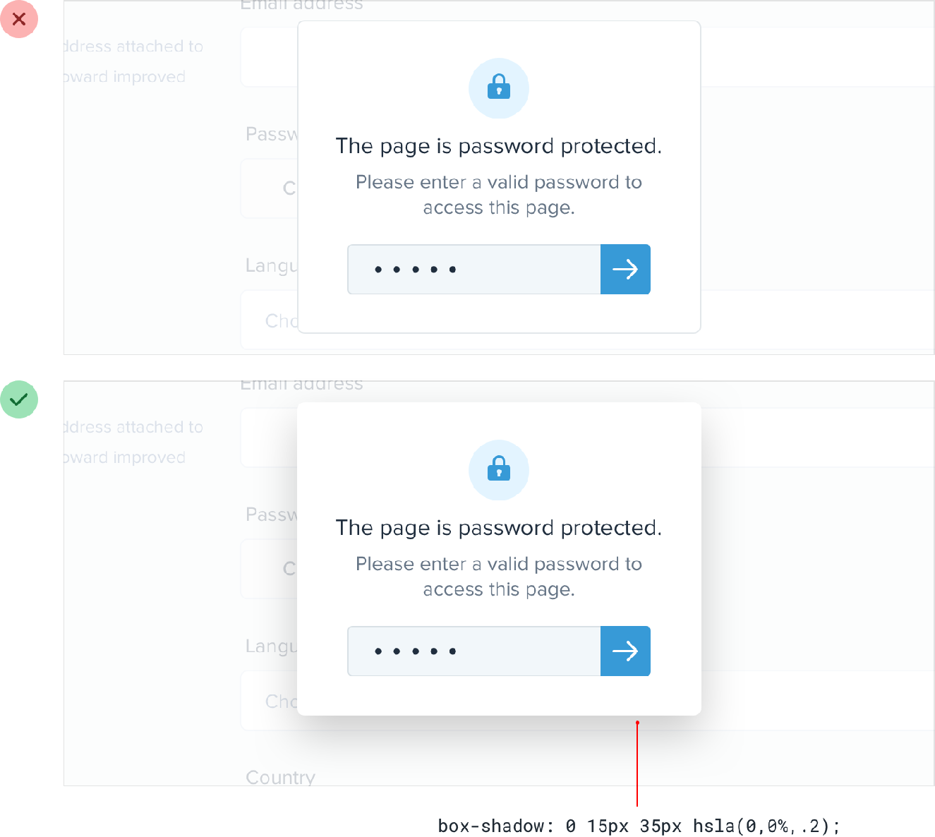 This approach works best when the element you are applying the box shadow to is not the same color as the background.