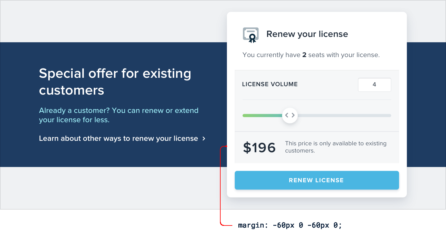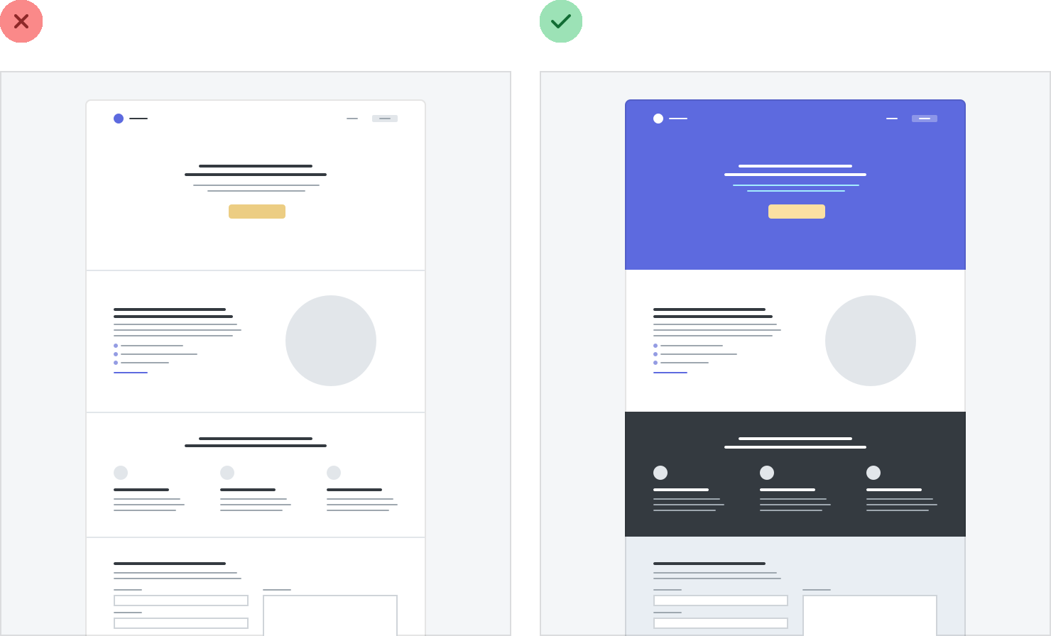 This works great for emphasizing an individual panel, as well as for adding some distinction between entire page sections.