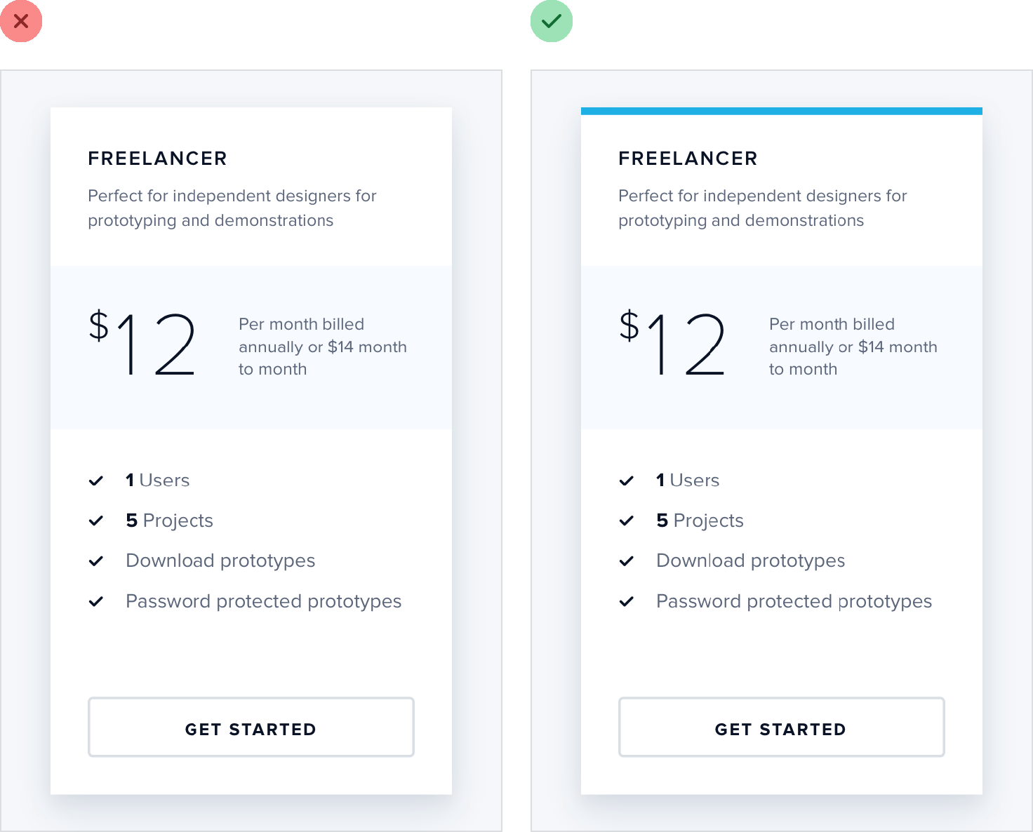 While borders are a great way to distinguish two elements from one another, they aren’t the only way, and using too many of them can make your design feel busy and cluttered.