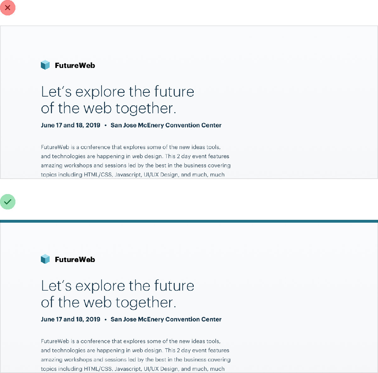 …or something as simple as using two different font colors for a headline: Paying attention to these sorts of unintuitive decisions is a great way to discover new ideas that you can apply to your own designs.