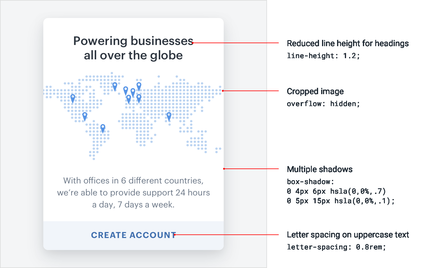 “add letter-spacing to uppercase text”, or “combine multiple shadows” all on your own.