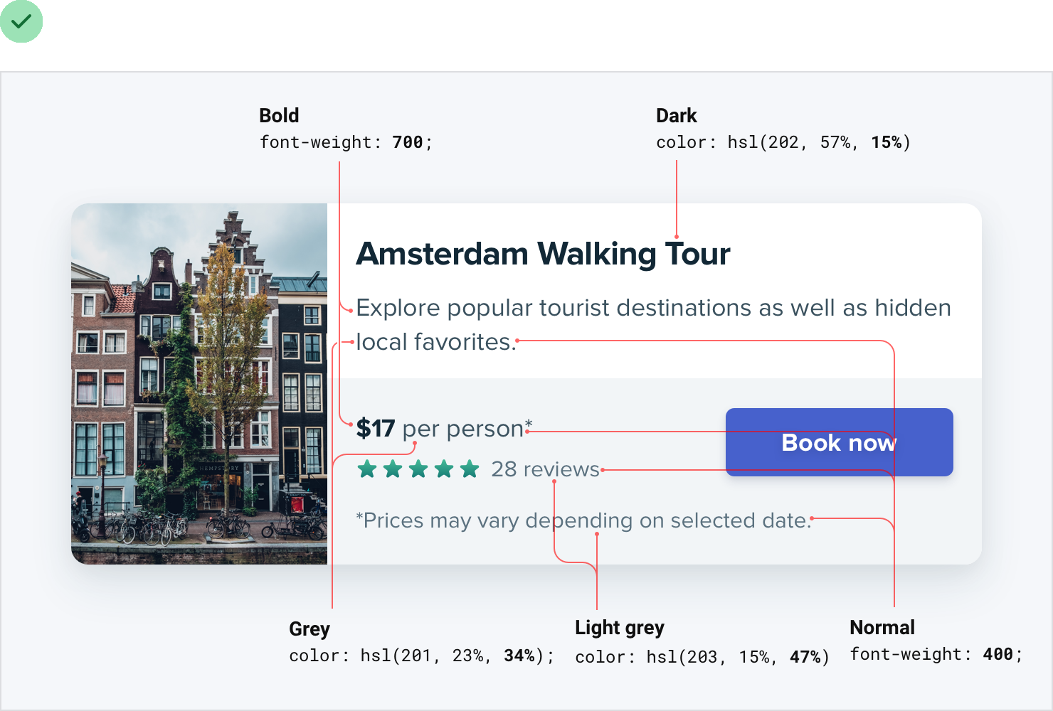 really polished is to recreate that design from scratch, without peeking at the developer tools.