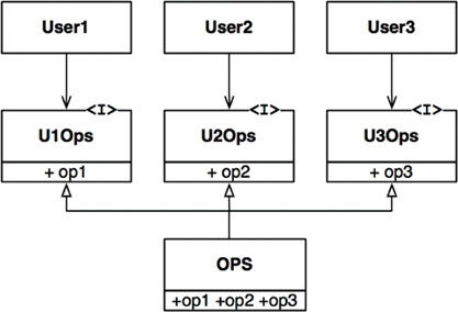 as fallacy of services, 241 kitty problem example, 242–243 in OO approach for cross-cutting concerns, 244–245 overview of, 153–154 of UI and database, 47 Induction, Dijkstra’s proof related to iteration, 28 Information hiding, Open-Closed Principle, 74–75 Inheritance relationships crossing circle boundaries, 206 defining OOP, 37–40 dependency inversion, 46 dependency management, 302 guiding use of, 78 Input/output business rules for use cases, 193–194 decoupling higher-level policy from lower level, 185–187 policy level defined as distance from, 184 separating components with boundary lines, 169–170 Integers, functional programming example, 50–51 Integration, weekly build issues, 112–113 Interface adapters, Dependency Rule for, 205 Interface Segregation Principle. See ISP (Interface Segregation Principle) IO device UNIX functions, 41–44 web is, 288–289 Isolation, test, 250–251