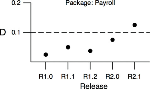 influencing composition of components, 118 overview of, 107–108 tension diagram, 108–110 CRT (cathode ray tube) terminals, Union Accounting archaeology project, 332–333 Cycles breaking, 117–118 effect of in dependency graph, 115–117 eliminating dependency, 113–115 weekly build issues, 112–113 D D metric, distance from Main Sequence, 130–132