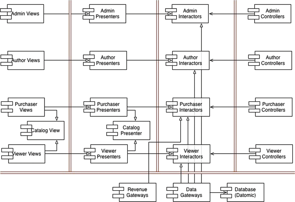 The Booch notation was very powerful. It presaged notations like UML. ROSE had an architecture—a real architecture. It was constructed in true layers, and the dependencies between layers were properly controlled. The architecture made it releasable, developable, and independently deployable. Oh, it wasn’t perfect. There were a lot of things we still didn’t understand about architectural principles. We did not, for example, create a true plugin structure. We also fell for one of the most unfortunate fads of the day—we used a so-called object-oriented database.