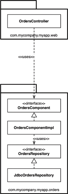 architecture and, 86 Common Reuse Principle compared with, 108 conclusion, 86 defined, 59 language type and, 85 overview of, 84–85 Iteration, 27–28 J Jacobson, Ivar, 196, 202 Jar files component architecture, 301 components as, 96 creating partial boundary, 219 defining function of components, 313 designing component-based services, 245–246 Download and Go rule for, 163 in source-level decoupling mode, 176 Java abstract components in, 125 code organization approaches in. See Code organization components as jar files in, 96 DIP and, 87 import statements for dependencies, 184 ISP example, 84–85 marrying standard library framework in, 293 module frameworks in, 319 package by layer in, 304–306 squares of integers example in, 50–51 weakening encapsulation, 36–37 Jitters, breaking cycle of components, 118 Junk mail example, 144–145 K Kitty problem example, 242–245 L Languages clean architecture and, 223–226 Hunt the Wumpus adventure game, 222–223 Laser Trim, archaeology project 4-TEL project, 343 overview of, 338–342 Layered architecture package by layer code organization, 304–306 relaxed, 311–312 why it is considered bad, 310–311 Layers approach to code organization, 304–306 clean architecture using, 202–203 decoupling, 151–152 duplication of, 155 eliminating target-hardware bottleneck, 262–263 independent developability, 154