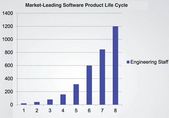 As an example, consider the following case study. It includes real data from a real company that wishes to remain anonymous. First, let’s look at the growth of the engineering staff. I’m sure you’ll agree that this trend is very encouraging. Growth like that shown in Figure 1.1 must be an indication of significant success!