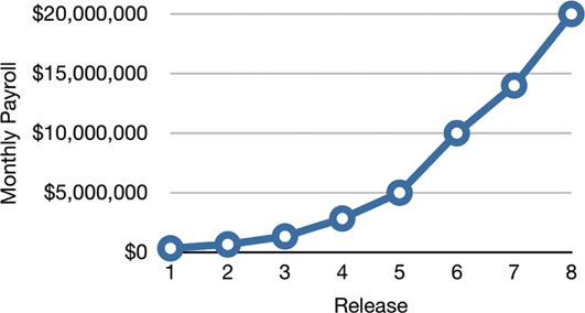 Figure 1.5 Monthly development payroll by release