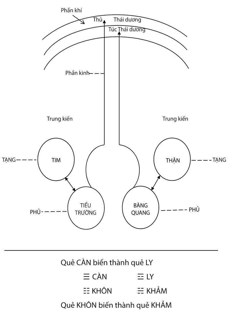 Đã căn cứ vào luật ly tâm hướng tâm của bầu khí quyện và sáu khí âm dương của trời đất, mà trong con người có 3 âm 3 dương. Thế là cả âm dương đều chỉ đến mức thứ ba là cùng cực. Dương đi ra đến mức cùng cực là phải trở vào âm, âm đi vào đến mực cùng cực là phải trở ra dương. Nếu không như thế, tức là sinh cơ đã bị gián đoạn.