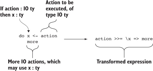 Listing 11.17. Defining do notation for infinite sequences of actions