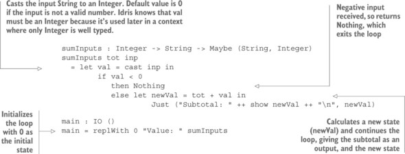 Listing 13.5. A main loop that reads and processes user input to the vending machine (Vending.idr)