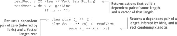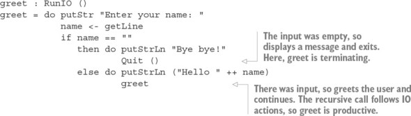 Listing 11.23. Repeatedly greets a user, exiting on empty input (RunIO.idr)
