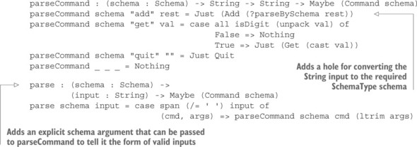 Listing 12.30. The complete definition of runCommand (ArithState.idr)