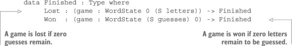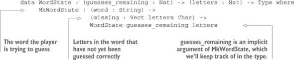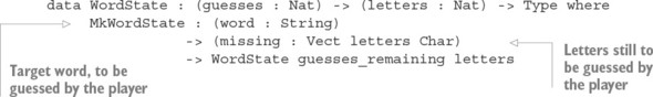 Listing 14.11. Representing the concrete game state (Hangman.idr)