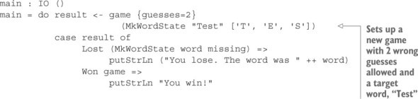 Listing 14.10. A complete implementation of gameLoop (Hangman.idr)