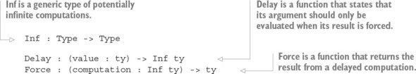 Listing 11.3. The Inf abstract data type, for delaying potentially infinite computations