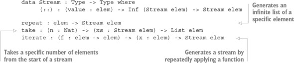 Listing 11.2. A data type of infinite lists (InfList.idr)