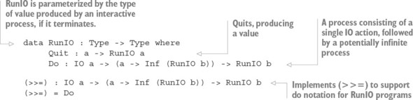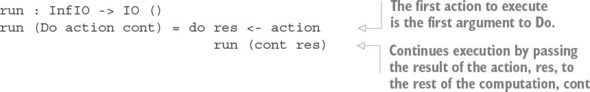 Listing 11.13. Converting an expression of type InfIO to an executable IO action (InfIO.idr)