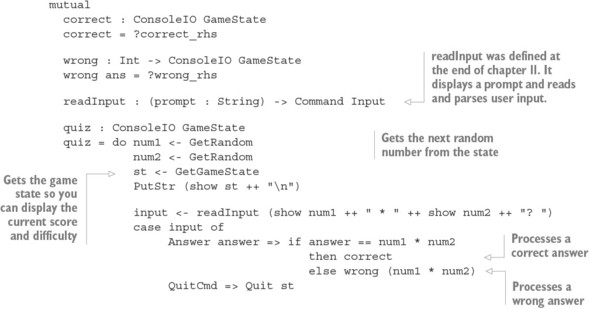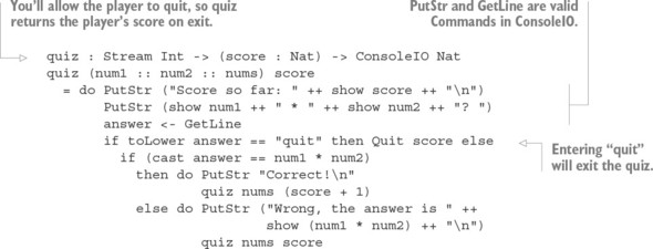 Listing 11.27. The arithmetic quiz, written as a ConsoleIO program (ArithCmd.idr)