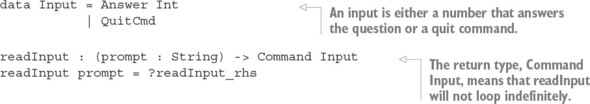 Listing 12.19. Running interactive programs (ArithState.idr)