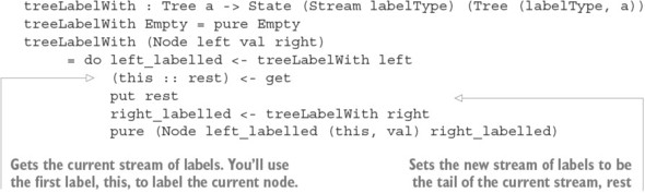 Listing 12.6. Defining treeLabelWith as a sequence of stateful operations (TreeLabelState.idr)