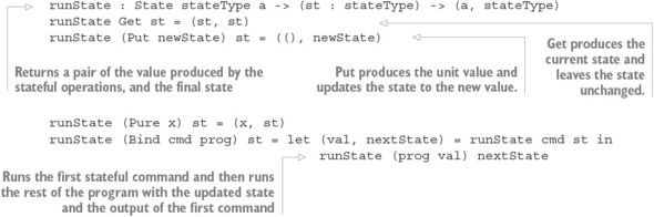 Listing 12.4. State and associated functions, defined in Control.Monad.State
