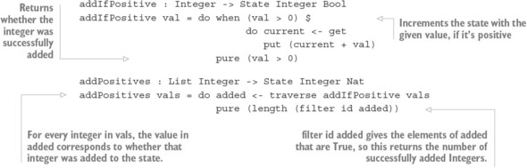 Listing 12.13. Adding positive integers from a list to a state (StateMonad.idr)
