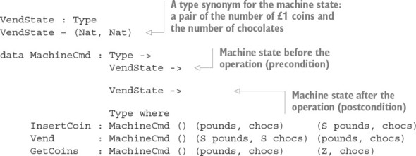 Listing 13.4. The complete model of vending machine state (Vending.idr)
