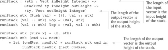 Listing 13.10. Updating runStack to support the interactive commands GetStr and PutStr (StackIO.idr)