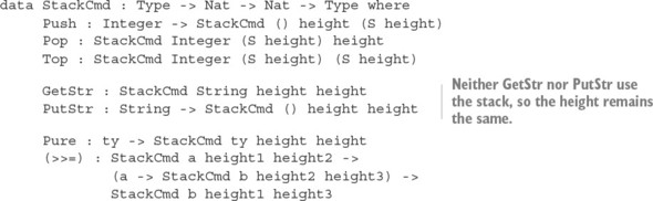 Listing 13.11. Defining infinite sequences of interactive stack operations (StackIO.idr)