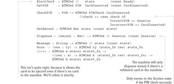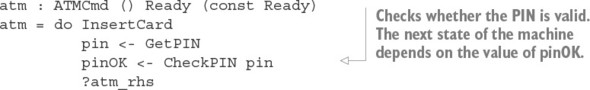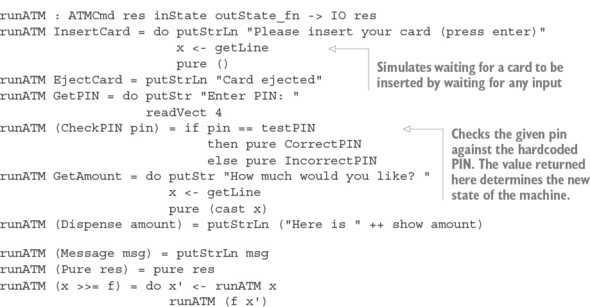 Listing 14.4. An atm function describing a sequence of operations on an ATM (ATM.idr)