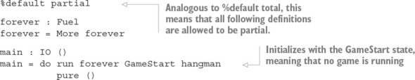 Listing 14.9. A type for describing potentially infinite game loops (Hangman.idr)