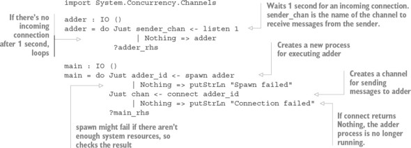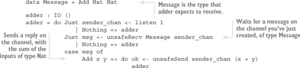 Listing 15.2. Outline of a program that sets up an adder process (AdderChannel.idr)