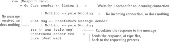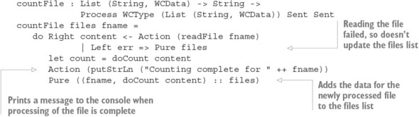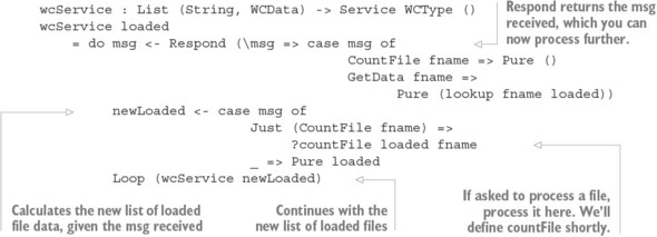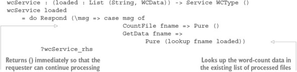 Listing 15.22. Responding to commands in wcService (WordCount.idr)