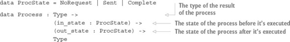 Listing 15.10. Annotating the Process type with its input and output states (ProcessState.idr)