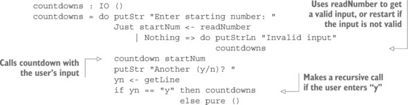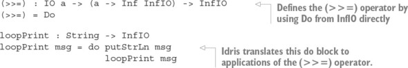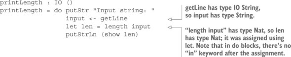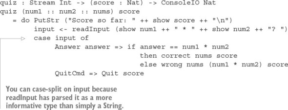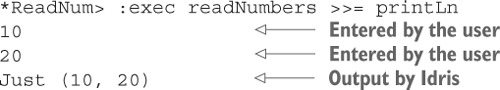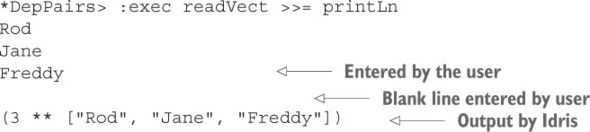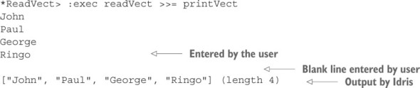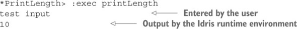 Danh sách 11.34. Định nghĩa bài kiểm tra sử dụng readInput như một lệnh tổng hợp để hiển thị một thông báo và đọc đầu vào của người dùng (ArithCmdDo.idr)