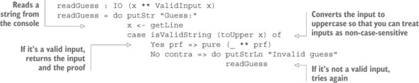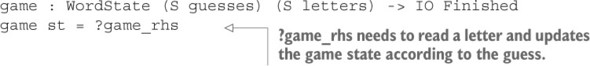 Danh sách 14.10. Triển khai hoàn chỉnh của gameLoop (Hangman.idr)