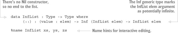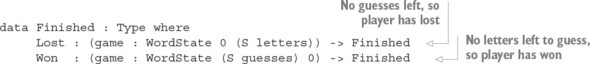Danh sách 14.9. Một loại để mô tả các vòng lặp trò chơi có thể vô hạn (Hangman.idr)