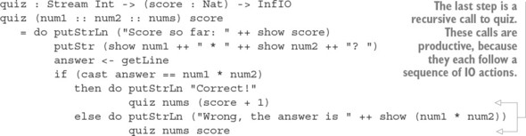 Danh sách 12.31. Chạy chương trình ConsoleIO gồm một luồng lệnh (Command) tiềm năng vô tận (ArithState.idr)