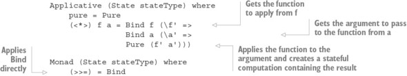 Danh sách 12.17. Xác định các triển khai Functor, Applicative và Monad cùng nhau (StateMonad.idr)