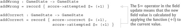 Danh sách 12.26. Cập nhật các trường bản ghi lồng bằng cách áp dụng trực tiếp các hàm lên giá trị hiện tại của trường (ArithState.idr)