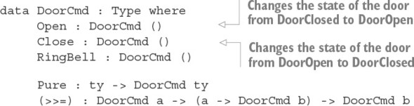 Danh sách 14.2. Kiểu DoorCmd tinh chỉnh, cho phép trạng thái đầu ra của mỗi hoạt động được tính toán từ giá trị trả về của hoạt động (DoorJam.idr)