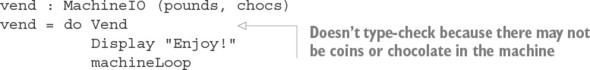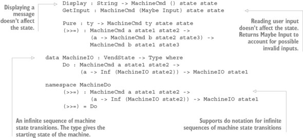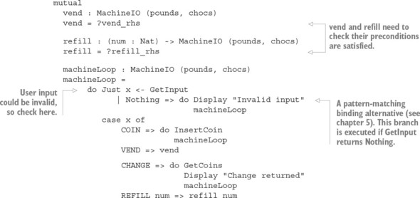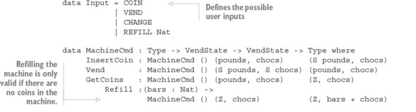 Danh sách 13.3. Mô hình máy bán hàng trong một kiểu, mô tả các chuyển trạng thái trong các kiểu lệnh (Vending.idr)