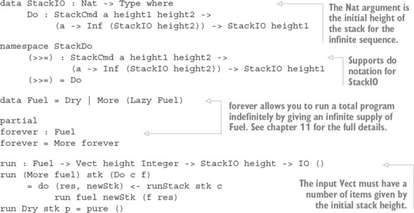 Danh sách 13.11. Định nghĩa các chuỗi vô hạn của các thao tác ngăn xếp tương tác (StackIO.idr)