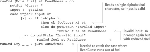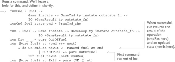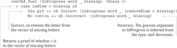 Liệt kê 14.14. Định nghĩa tóm tắt của runCmd (Hangman.idr)