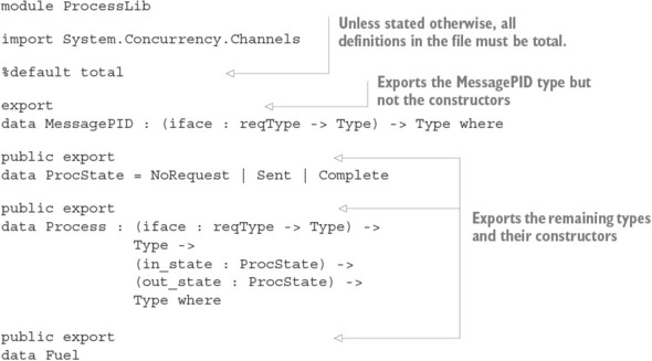 Danh sách 15.16. Định nghĩa Process trong một module, bỏ qua các định nghĩa (ProcessLib.idr)
