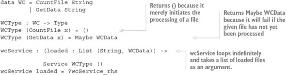 Danh sách 15.23. Triển khai chưa hoàn chỉnh của wcService (WordCount.idr)